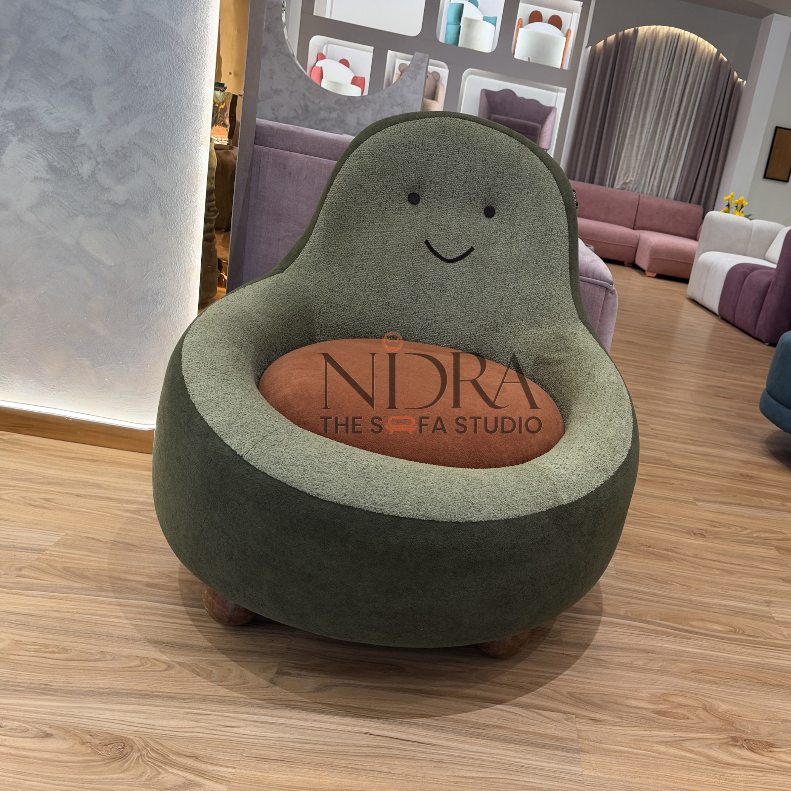 Bring home a unique blend of comfort, creativity, and luxury with the Aadu Fruit designer chair from Nidra : The Sofa Studio, your trusted Sofa Store in Indore. Specially designed as a Kids Sofa in Indore, this charming single seater features a playful fruit-inspired shape with a soft, welcoming smile perfect for adding personality to any space.