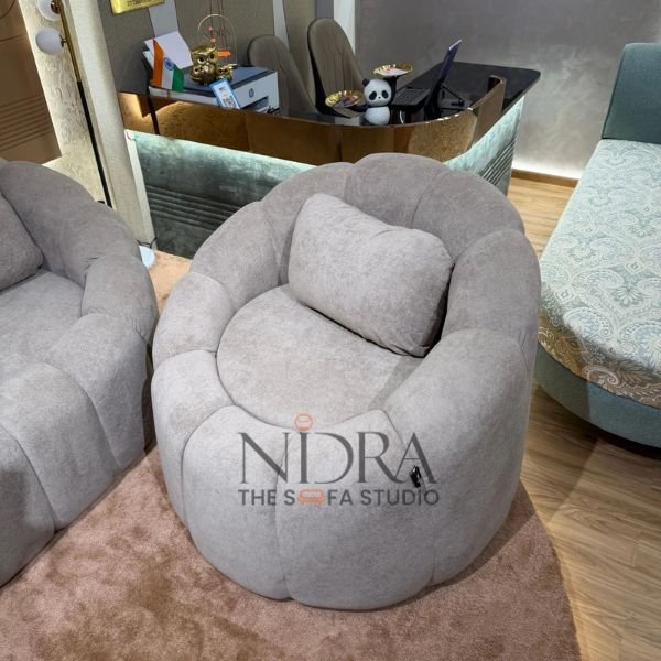 Wrapped in premium fabric upholstery, the Sukoon luxury fabric sofa in Indore offers a smooth, velvety touch and rich cushioning for unmatched comfort. Its padded backrest and elegant curved silhouette provide superior support, making it perfect for cozy evenings, family moments, and relaxed conversations. The soothing neutral shade and contemporary design enhance both modern and premium interiors.